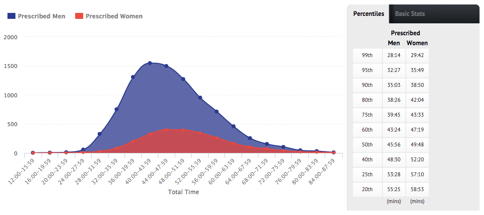 สำหรับช่วงเวลาที่ตั้งไว้หวังสำหรับ Murph ในทั้งสามเวอร์ชันของการออกกำลังกายนี้ มีดังนี้: