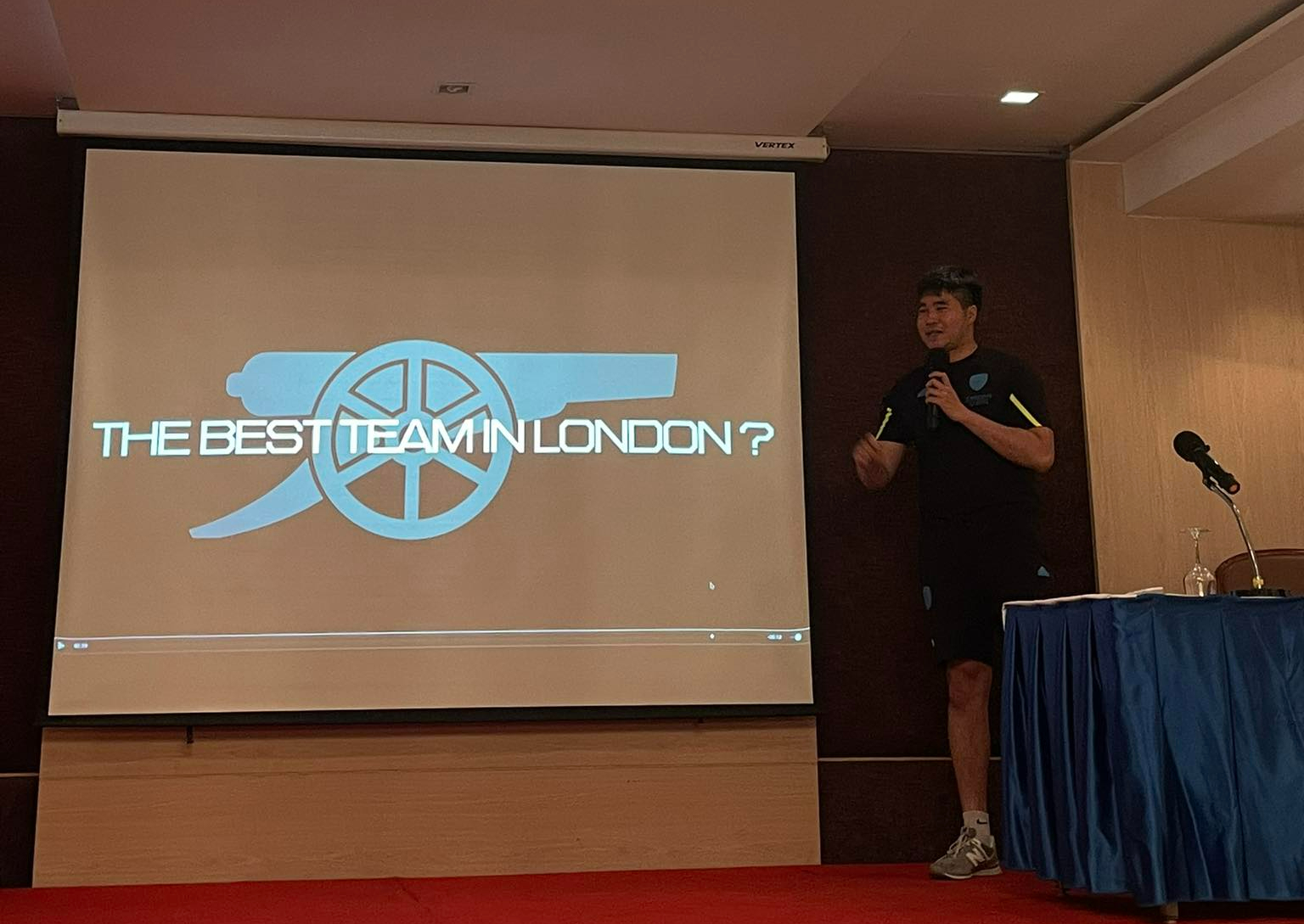 คุณเลี้ยง อธิคุณ ปิ่นทอง Football Analyst จากสโมสร Arsenal fc รองแชมป์ Premier League 2023/2024 ที่ยอดมูลค่าการตลาดสูงที่สุดในโลก สำหรับกีฬา Football