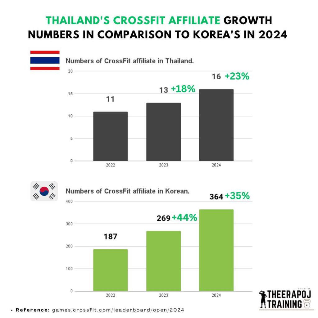 จำนวน CrossFit box ในเกาหลีใต้กำลังเติบโตอย่างต่อเนื่อง โดยเฉพาะอย่างยิ่งหลังจากความนิยมของรายการ Netflix เรื่อง Physical 100 ซึ่งมีนักกีฬา CrossFit หลายคนปรากฏตัว รายการนี้กระตุ้นความสนใจในกีฬาประเภทนี้ และส่งผลให้ความต้องการใช้บริการ CrossFit box ในประเทศเพิ่มมากขึ้น