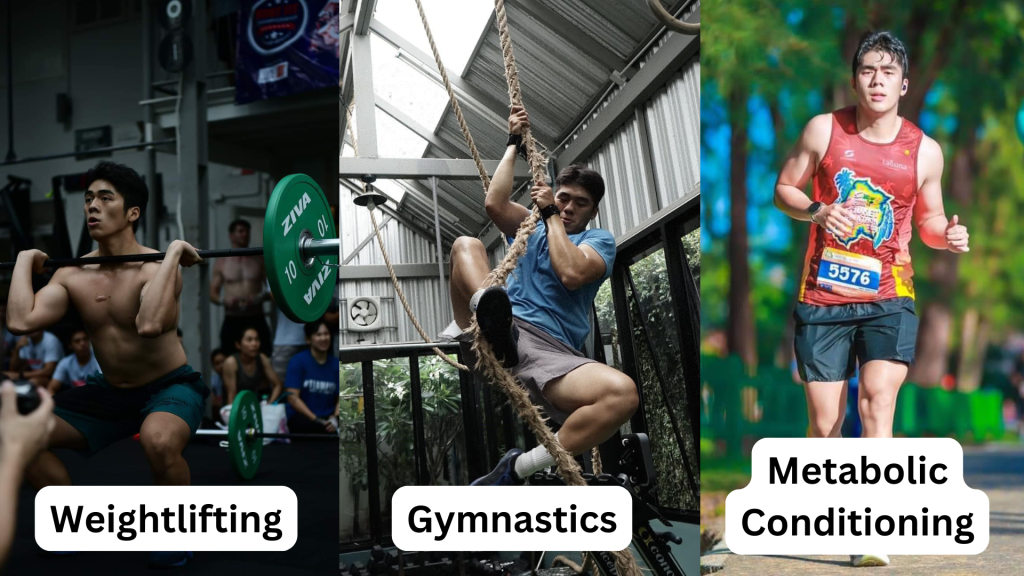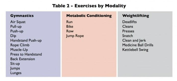 องค์ประกอบหลักของ CrossFit สามารถแบ่งออกเป็น 3 ส่วนหลัก ดังนี้: