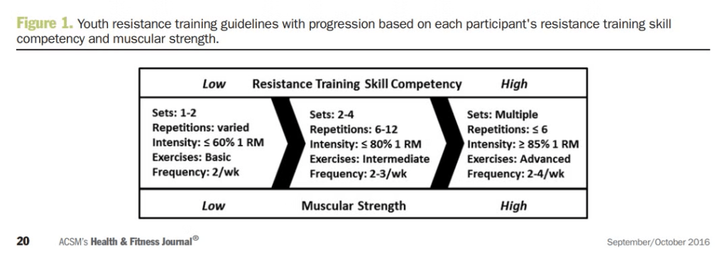 แนวทางการฝึกแรงต้านสำหรับเยาวชน โดยพิจารณาความก้าวหน้าตามความชำนาญในทักษะการฝึกแรงต้านและความแข็งแรงของกล้ามเนื้อของแต่ละบุคคล