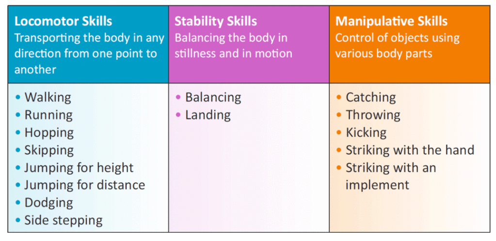 - Locomotor Skills (ทักษะการเคลื่อนที่) ทักษะที่เกี่ยวข้องกับการเคลื่อนย้ายร่างกายจากที่หนึ่งไปยังอีกที่หนึ่ง